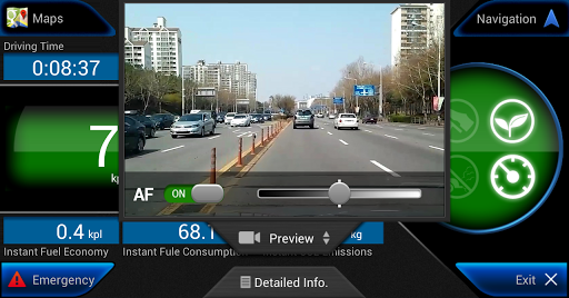 Usted puede comprobar y guardar datos en tiempo real de vehículos, códigos de apuro mientras usted maneja, así como vídeo de alta calidad con su pista. Todos estos datos guardados será de gran ayuda en situaciones de emergencia como accidente de coche, mal funcionamiento o avería.